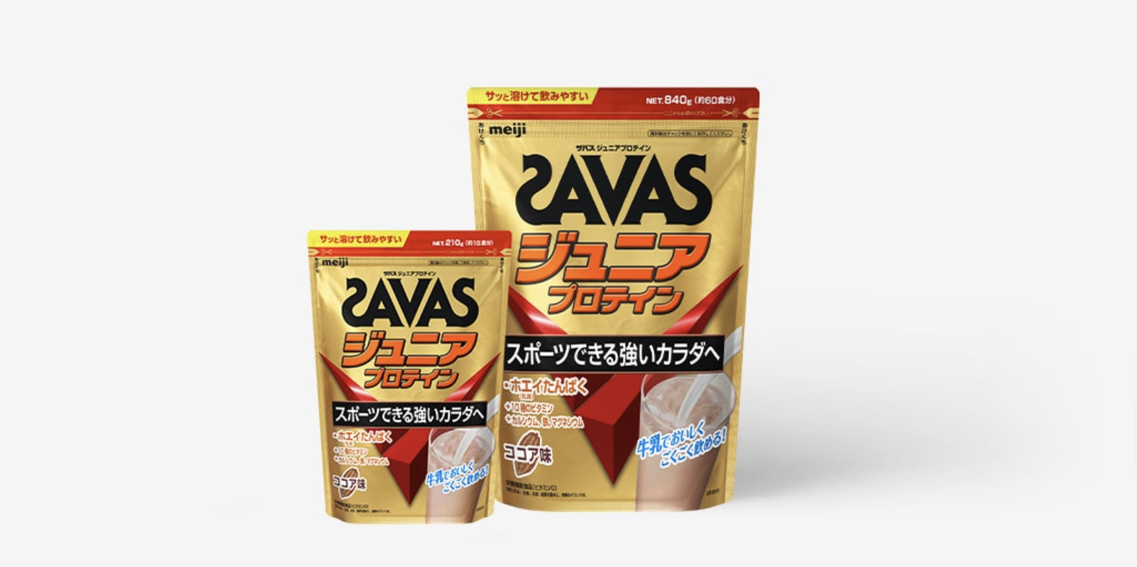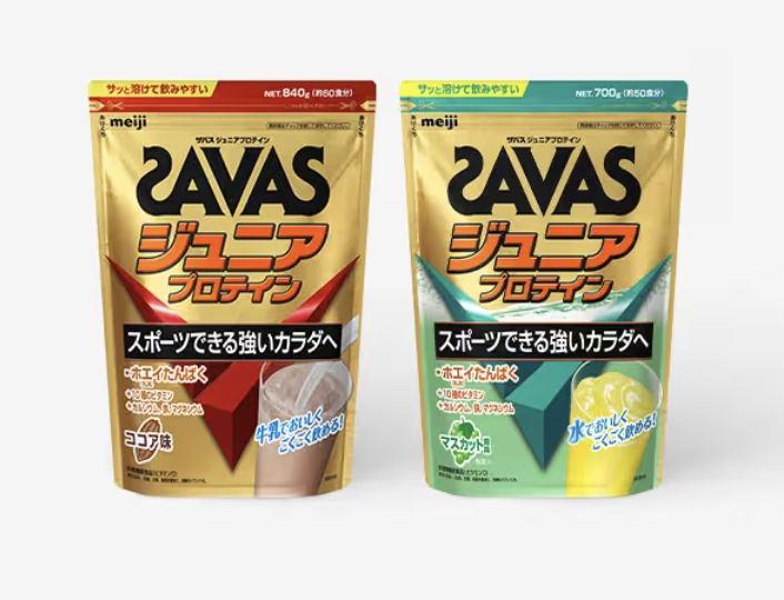 ・「ザバス ジュニアプロテイン」は、明治が実施したスポーツジュニアの食事調査結果に基づき、スポーツジュニアのカラダづくりに必要とされるビタミン、ミネラルを独自に設計して配合しています。