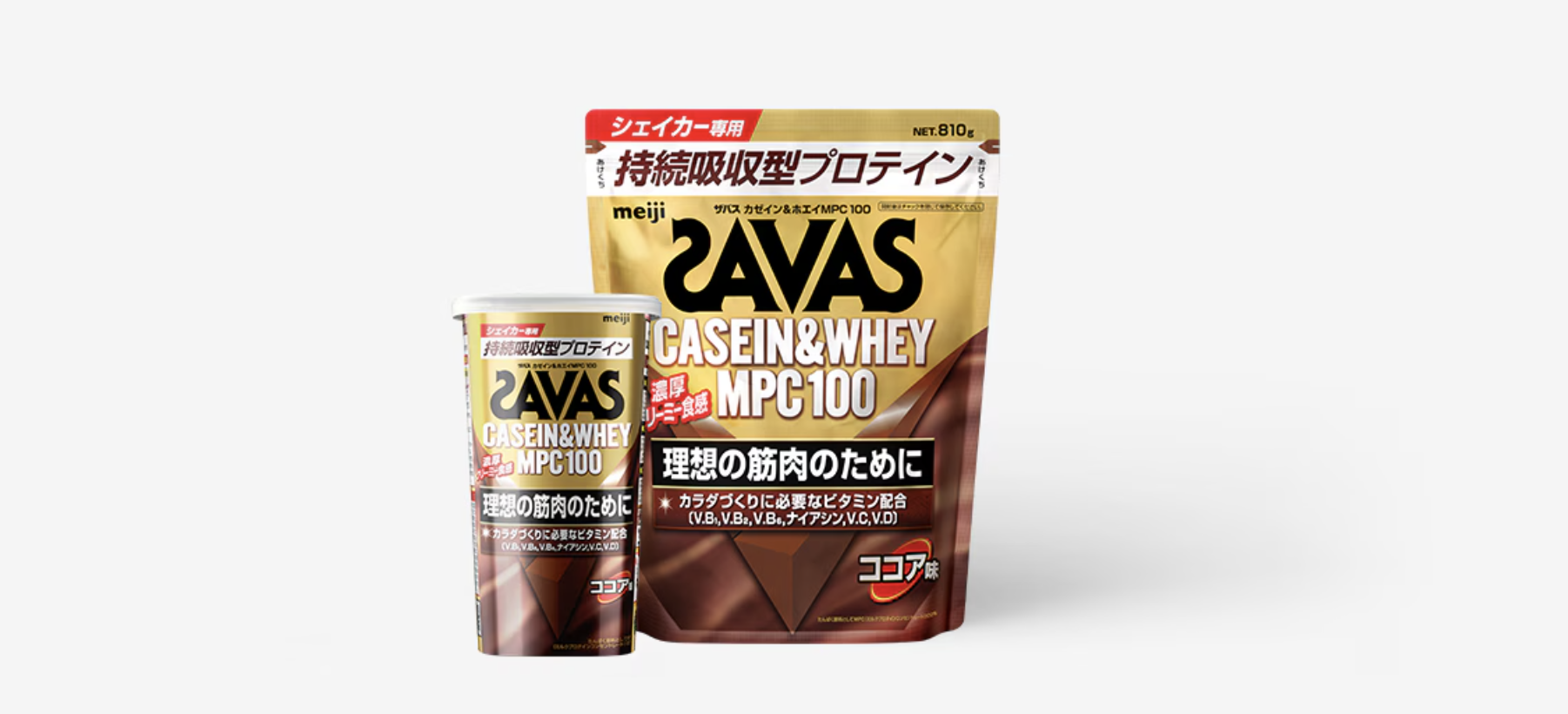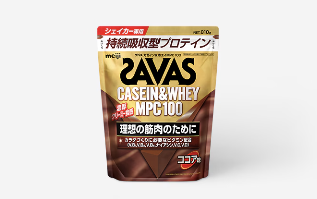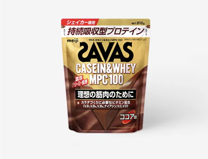 ・「ザバス カゼイン&ホエイ MPC100」は、明治が実施したアスリートの食事調査結果に基づき、アスリートのカラダづくりに必要とされるビタミンを独自に設計して配合しています。